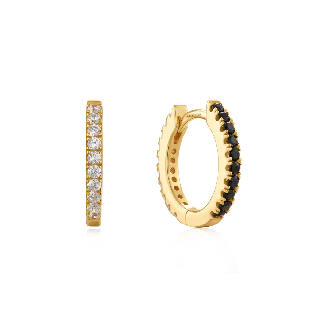 Keine Angst mehr, die Ohrringe verkehrt herum zu tragen. Die mit zweifarbigen Zirkoniasteinen besetzten Huggies sind so konzipiert, dass sie auf beiden Seiten getragen werden können und so perfekt zu verschiedenen Kleidungsstilen passen.