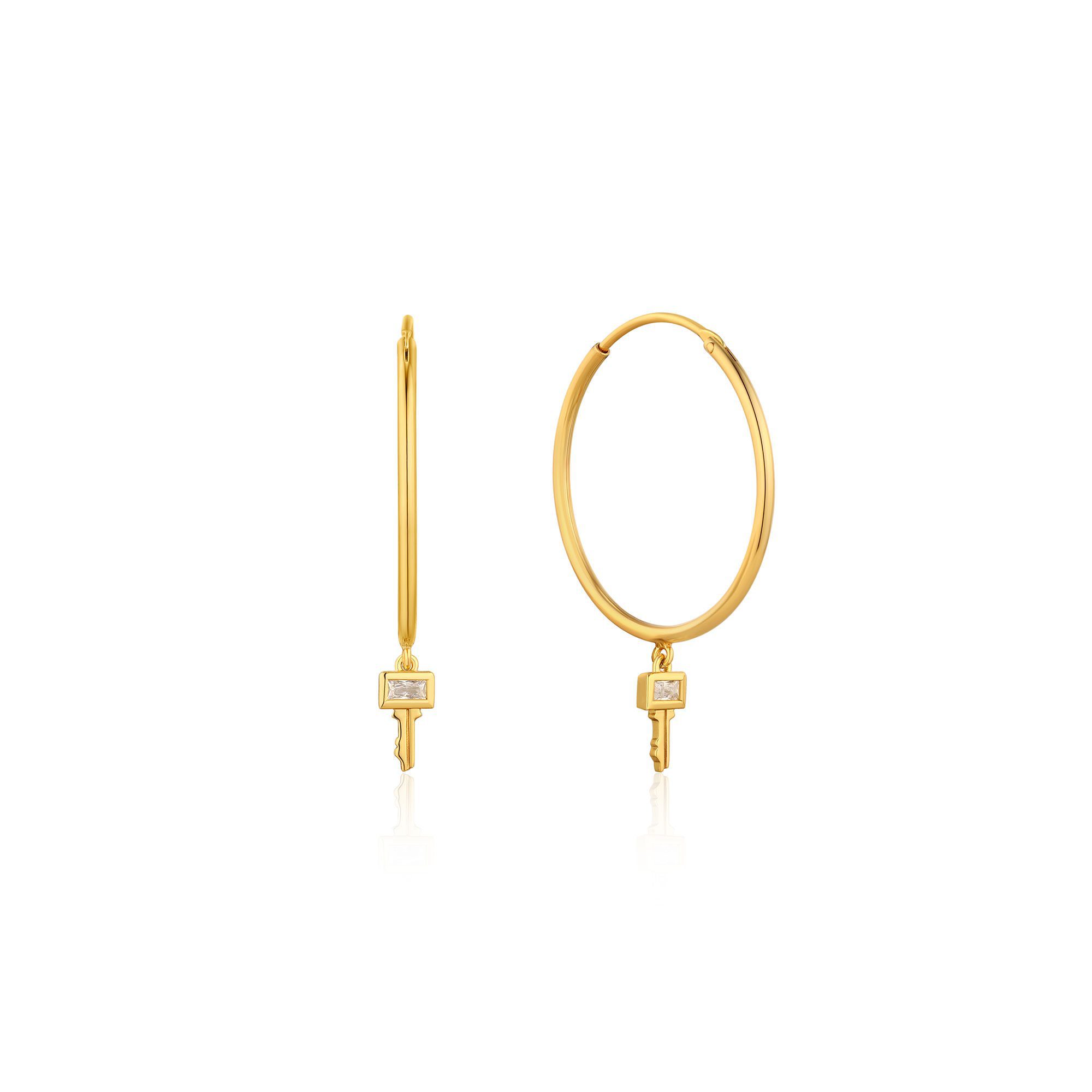 Das perfekte Paar schlichter Creolen aus dieser Kollektion zieht die ganze Aufmerksamkeit auf sich. Unser glatter und schlanker mittelgroßer Creolen-Ohrring wäre ohne dieses atemberaubende Detail des Mikro-Schlüsselanhängers nicht komplett, um den Look zu vervollständigen. Mit einem eckigen Zirkonia-Stein inklusive verspricht dieses einzigartige Paar Creolen, das Licht bei jeder Bewegung einzufangen.