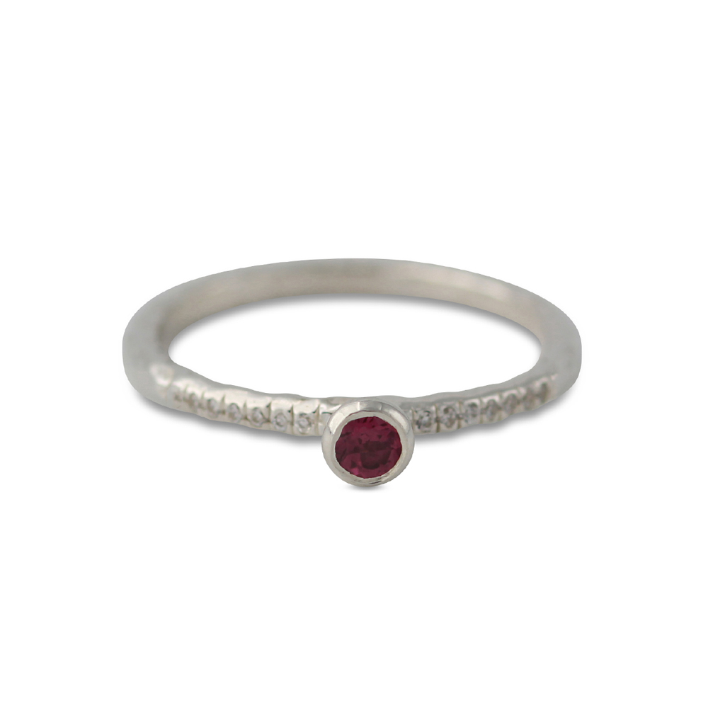 Zierlicher Campur Edelsteinring mit Rhodolith und Zirkonia Steinen.