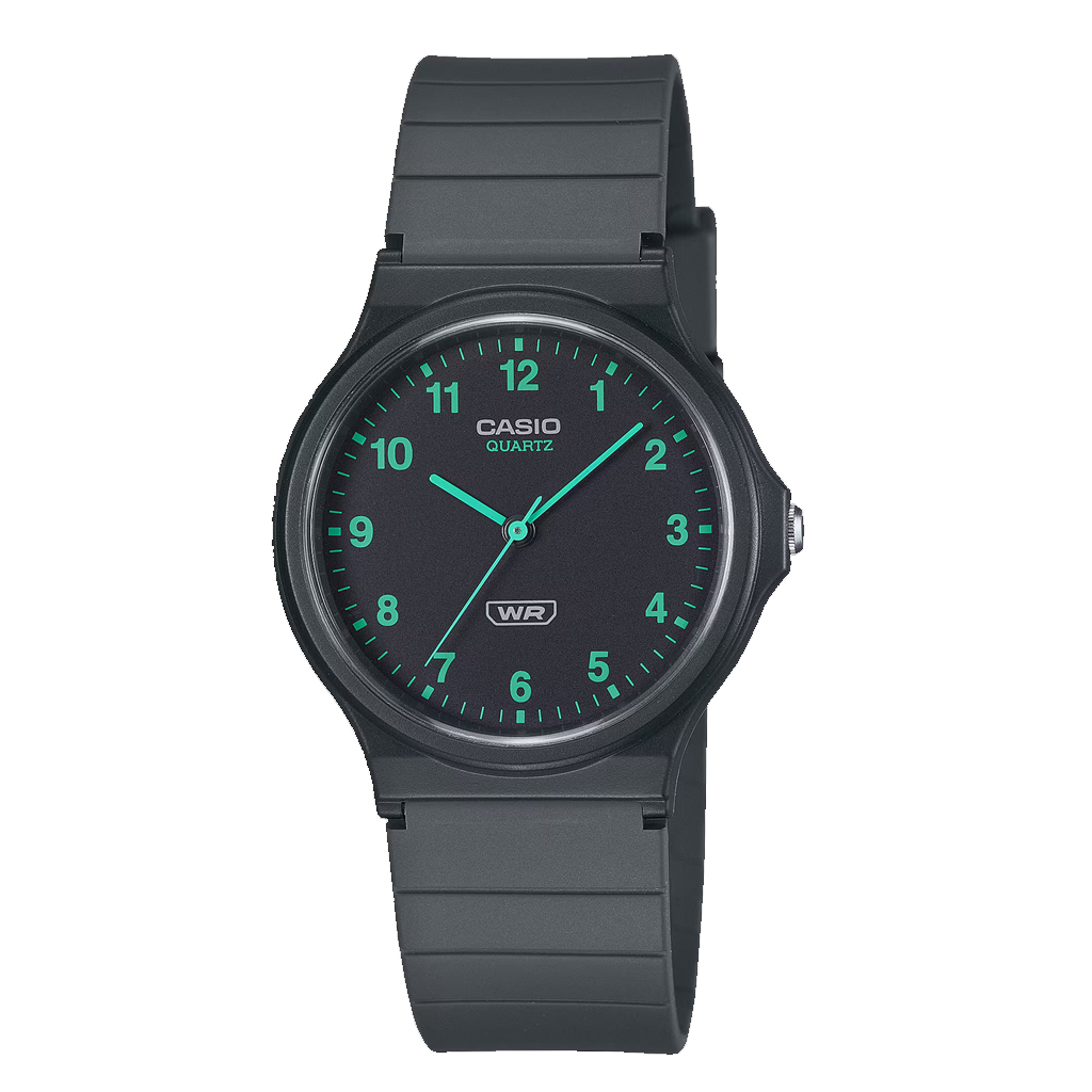Der Bestseller MQ-24 ist wieder da und wird jetzt aus umweltfreundlicheren Materialien hergestellt. Das Design der Stunden-, Minuten- und Sekundenzeiger ist schlicht gehalten und in unterschiedlichen monochromen Farbgebungen. Der schlanke, minimalistischen Look ist das perfekte Accessoire für Groß und Klein. Das Band besteht aus biobasiertem Resin, das dazu beitragen soll, die Umweltbelastung zu verringern.