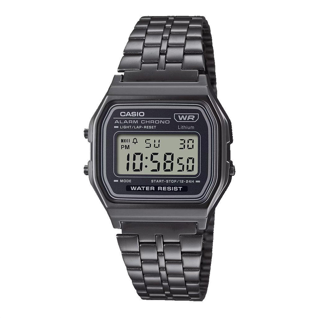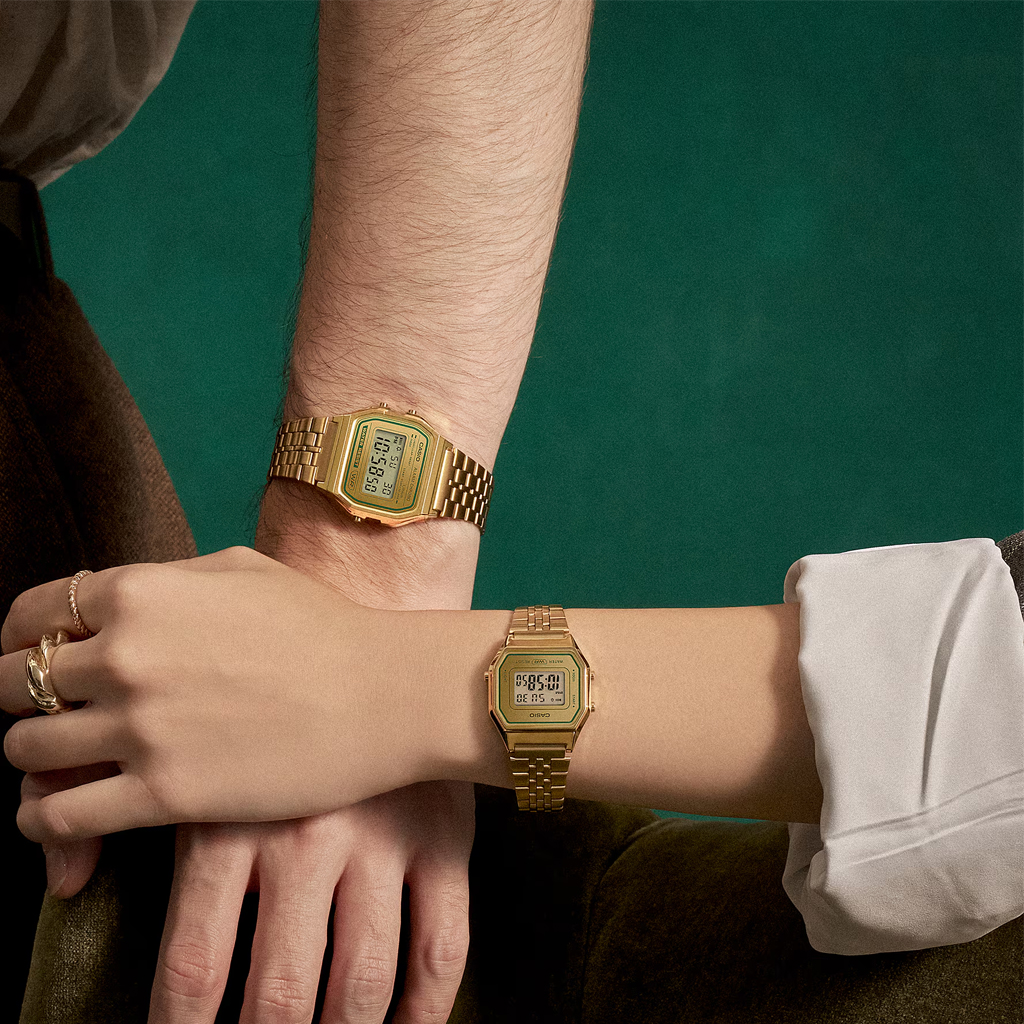 Charmant und klassisch mit einem auffälligen Farbschema in Schwarz und Grün. Die allseits beliebte A158 setzt grüne Akzente auf goldenem Grund – ein zeitloses und doch modernes Unisex-Design. Das mehrreihige Metallarmband ist mattiert und mit einem aufgedampften Uhrenglas gepaart, das für einen besonders schönen Glanz sorgt. Nicht nur cool, sondern auch praktisch. Genieße die praktische Funktionen wie LED-Hintergrundbeleuchtung, Stoppuhr, Alarm und mehr.